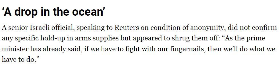 △卡塔爾半島電視臺網站:雖然內塔尼亞胡政府嘴里說氣話,但其實心里不以為然,因為與美國提供給以色列的巨量武器相比,暫停運送的武器只是“滄海一粟”。