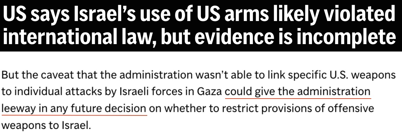 美聯社的報道直擊要害:是為今后繼續(xù)對以色列提供軍援留下余地。