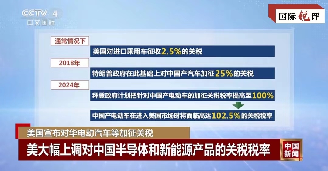 這其中,對(duì)中國(guó)電動(dòng)汽車加征的進(jìn)口關(guān)稅令人瞠目——從27.5%升至102.5%,對(duì)太陽(yáng)能電池的進(jìn)口稅從25%提高到50%,對(duì)鋰電池的關(guān)稅稅率從7.5%提高到25%。不難看出,美國(guó)政府此次針對(duì)的重點(diǎn)是中國(guó)新能源相關(guān)產(chǎn)業(yè)。難怪美國(guó)多名高官近期密集炒作所謂中國(guó)新能源“產(chǎn)能過(guò)?!保贿^(guò)是為加征關(guān)稅制造借口。