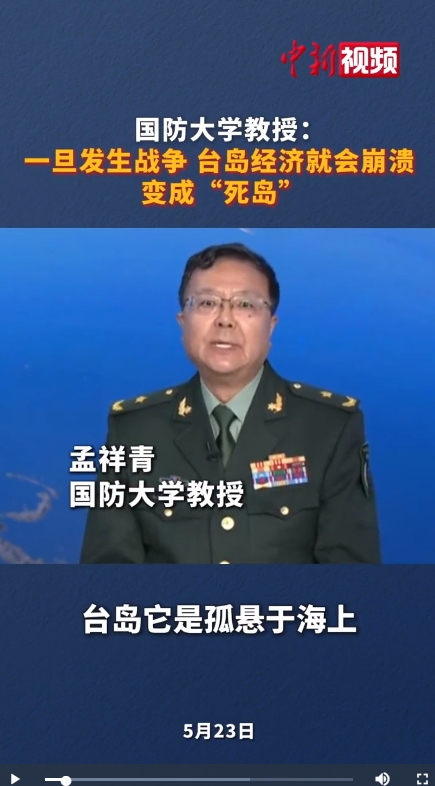 國防大學(xué)教授:一旦發(fā)生戰(zhàn)爭,臺島經(jīng)濟(jì)將瞬間崩潰,變成“死島”。本次演習(xí)直搗援助臺島的外部通道。