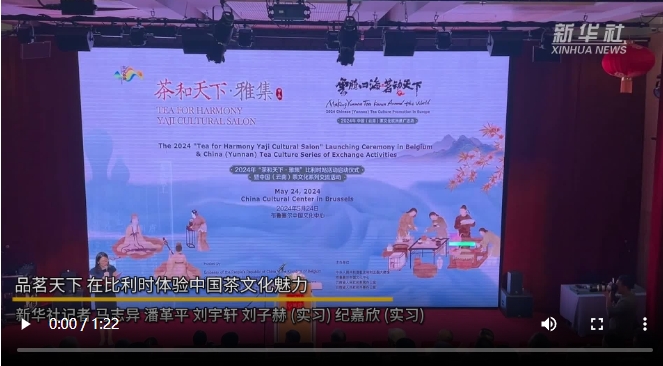 “茶和天下·雅集”云南茶文化交流活動24日在比利時布魯塞爾中國文化中心舉辦?;顒右圆铻槊剑ㄟ^茶主題文藝展演、茶文化詩詞分享會、中國國家級非遺技藝展示和體驗等多種形式,吸引比利時民眾感受中國茶文化的魅力。