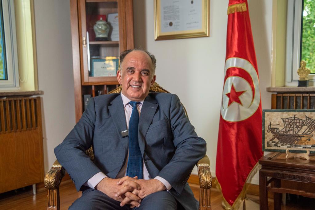 突尼斯駐華大使阿迪勒·阿拉比接受新華社記者專訪(5月18日攝)。新華社記者 卜多門 攝