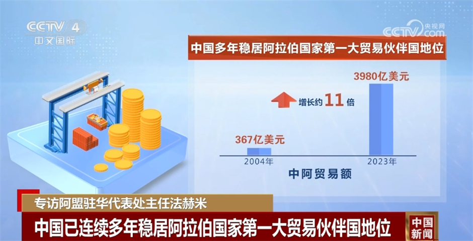 而在經(jīng)貿(mào)層面,中國(guó)已連續(xù)多年穩(wěn)居阿拉伯國(guó)家第一大貿(mào)易伙伴國(guó)地位,中阿貿(mào)易額從2004年的367億美元增至2023年的3980億美元,增長(zhǎng)約11倍。特別值得一提的是,目前,全部22個(gè)阿拉伯國(guó)家和阿盟均同中方簽署了共建“一帶一路”合作文件。