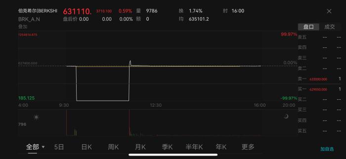 周一開(kāi)盤(pán),美股遭遇多股異動(dòng),40余只股票集體瞬間暴跌近100%。其中,股神巴菲特旗下的伯克希爾公司A類股從每股62萬(wàn)美元的高價(jià)跳至185.1美元,巴里克黃金、紐斯卡爾動(dòng)力公司等股票一度掉至不到1美元/股的“白菜價(jià)”。
