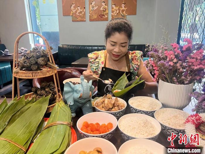 在泰國,粽子叫做“芭掌”(音譯)?!拔覀兤綍r把沒有餡的粽子蘸糖當早餐吃,到了端午節(jié)則少不了肉粽。”歐春菊說,飲食文化的交流,讓泰中兩國民眾的親密值不斷提升。而她開辦泰餐館的目的是把正宗的泰國菜帶給中國民眾,讓兩國民眾越走越親。