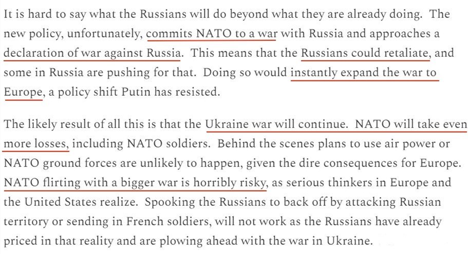 文章警告,美國等國家放寬援烏武器使用限制的新政策在事實(shí)上將北約拉進(jìn)了與俄羅斯的沖突中,并且已經(jīng)接近于對俄宣戰(zhàn)。這將導(dǎo)致俄烏沖突無限期繼續(xù)下去,最終令北約自身蒙受更多損失。