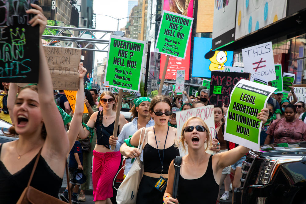 2022年7月4日,墮胎權(quán)支持者在美國紐約舉行示威游行。美國聯(lián)邦最高法院6月24日推翻近半個(gè)世紀(jì)前在聯(lián)邦層面確立墮胎權(quán)的判例“羅訴韋德案”,取消對(duì)女性墮胎權(quán)的憲法保護(hù),引發(fā)廣泛爭(zhēng)議。新華社發(fā)(郭克攝)