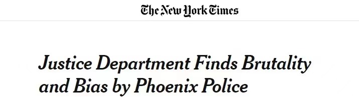 據(jù)《紐約時(shí)報(bào)》報(bào)道,美國(guó)司法部13日對(duì)亞利桑那州首府菲尼克斯市的警務(wù)工作進(jìn)行了全面審查,發(fā)現(xiàn)該市存在嚴(yán)重歧視非裔、西班牙裔和美洲原住民,經(jīng)常侵犯無家可歸者的權(quán)利以及過度使用武力等現(xiàn)象。