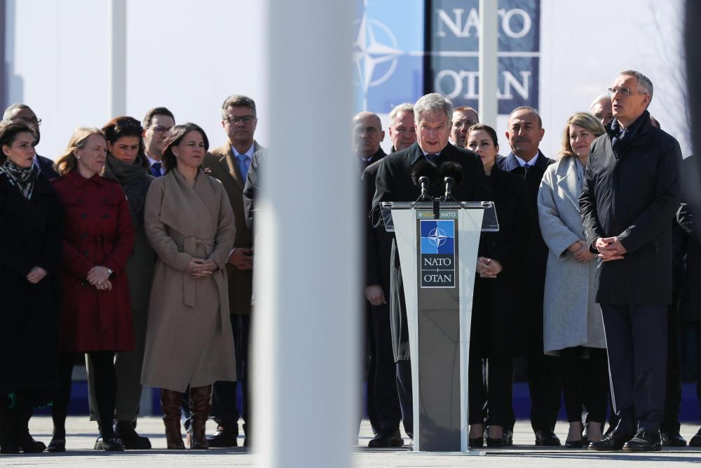 2023年4月4日,在比利時(shí)布魯塞爾的北約總部,芬蘭總統(tǒng)尼尼斯托在芬蘭加入北約儀式上發(fā)言。新華社記者鄭煥松攝