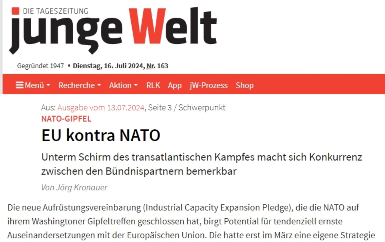 諷刺的是,為了借這場(chǎng)危機(jī)重振歐洲軍工產(chǎn)業(yè)、擺脫對(duì)美依賴,歐盟委員會(huì)今年3月剛剛公布了歐盟首份《歐洲國(guó)防工業(yè)戰(zhàn)略》。但有德國(guó)媒體警告,北約華盛頓峰會(huì)上達(dá)成的《工業(yè)能力擴(kuò)張承諾協(xié)議》或?qū)⑹箽W盟與北約爆發(fā)嚴(yán)重爭(zhēng)端。