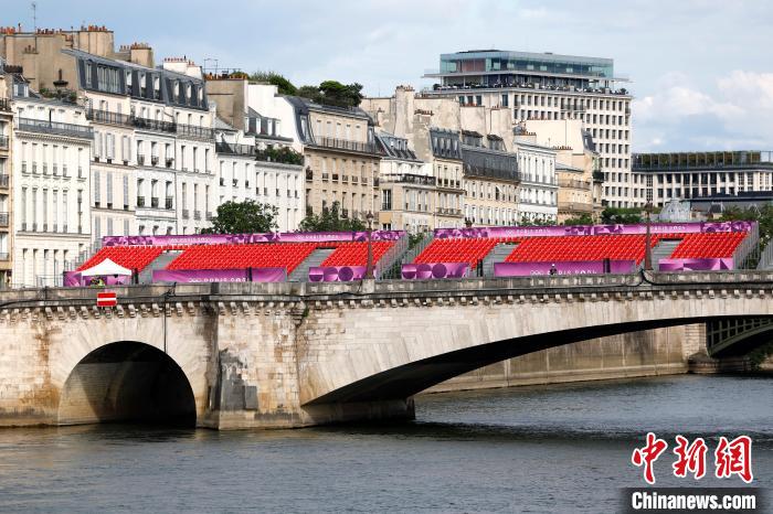 當?shù)貢r間7月21日,巴黎奧運會開幕在即,圖為塞納河上的觀眾席?!≈行律缬浾?富田 攝