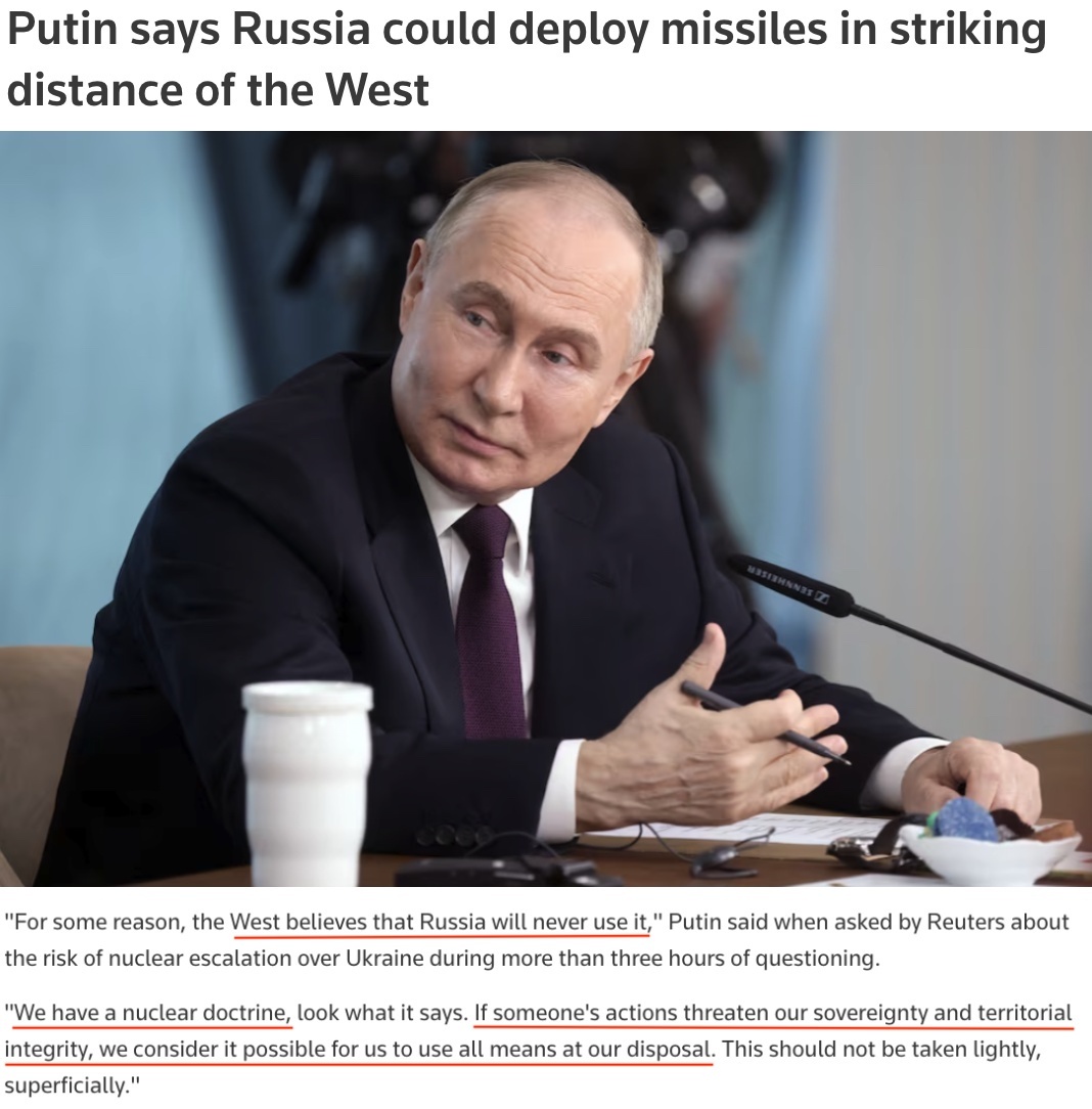俄總統(tǒng)普京多次強調(diào),出于某種原因,西方認為俄羅斯永遠不會使用核武器,但俄羅斯有自己的核原則。