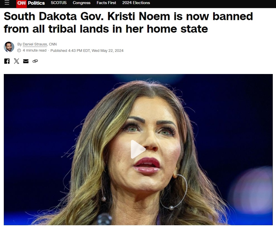 由于不滿諾姆屢次發(fā)表歧視性言論,南達(dá)科他州全部9個(gè)印第安人保留地先后投票表決,宣布“驅(qū)逐”這名女政客。
