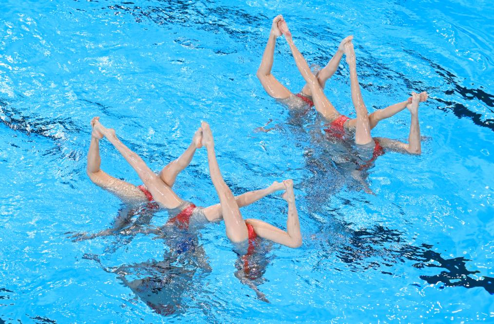 8月7日,中國花樣游泳隊(duì)在比賽中。新華社記者 夏一方 攝