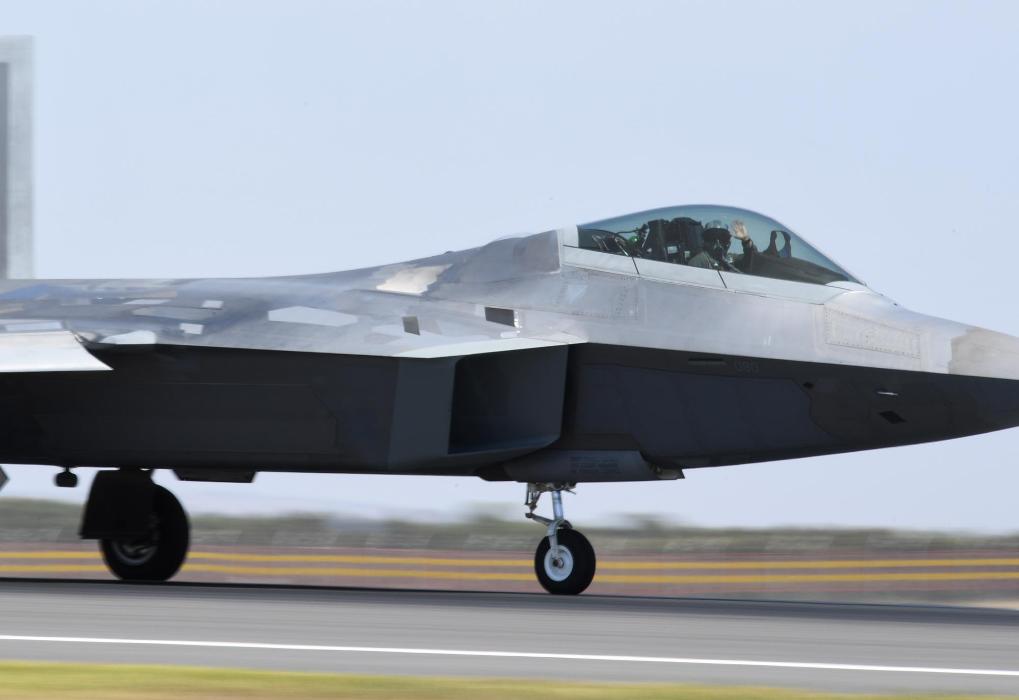 2019年2月28日,在澳大利亞墨爾本,一架美軍F-22戰(zhàn)機(jī)準(zhǔn)備在澳大利亞國(guó)際航空展期間進(jìn)行飛行表演。新華社記者白雪飛攝