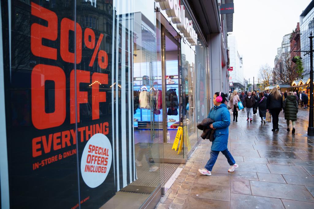 2023年11月22日,一名女子走進英國曼徹斯特一家打折店鋪。新華社發(fā)(喬恩·休珀攝)