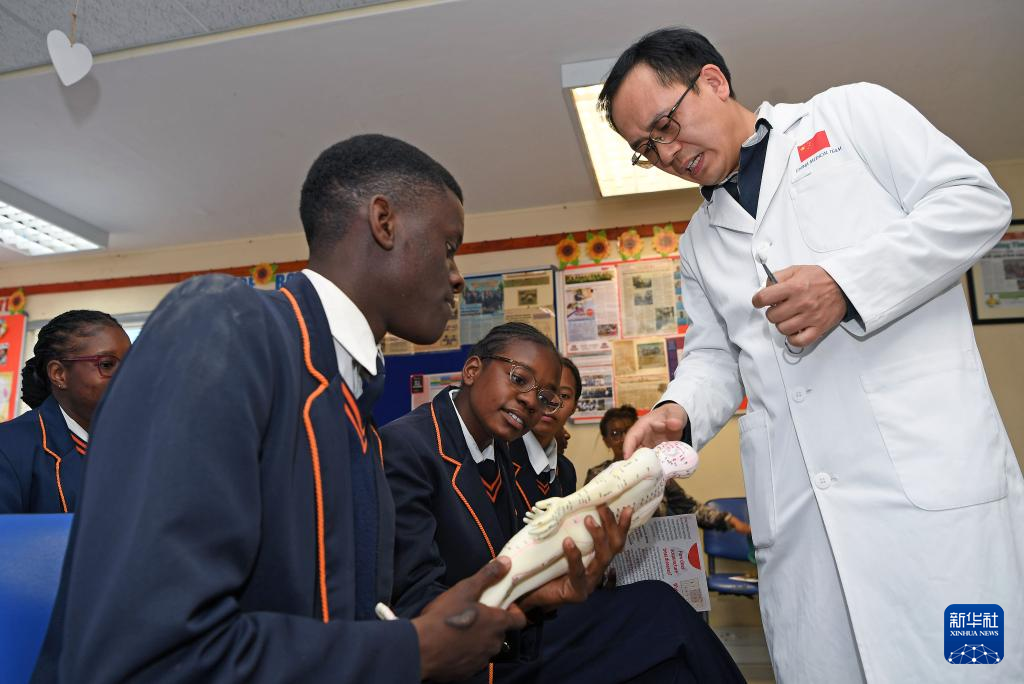 醫(yī)療隊還受邀走進納米比亞大學孔子學院在當?shù)囟鄠€中小學開設的中文教學點,用針灸、火罐做教具,以傳統(tǒng)中醫(yī)文化為內容,讓同學們沉浸式體驗中文學習,受到師生們一致好評。