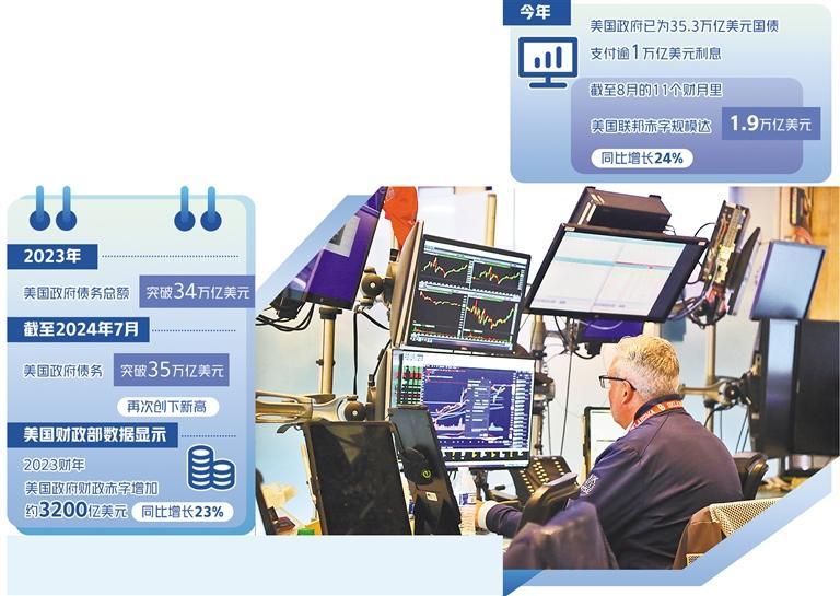 20世紀(jì)80年代以來,美債規(guī)模急劇上漲。1990年美國政府債務(wù)總額約為3.2萬億美元,2000年這一數(shù)字增長至約5.62萬億美元,2010年增至約13.56萬億美元,2020年增至約27.74萬億美元,2023年美國政府債務(wù)總額突破34萬億美元。截至2024年7月,美國政府債務(wù)突破35萬億美元,再次創(chuàng)下新高。雖然美聯(lián)儲降息能夠緩解部分償債壓力,但美債規(guī)模擴張勢頭恐怕難以控制,將成為籠罩在全球經(jīng)濟上空的陰影。