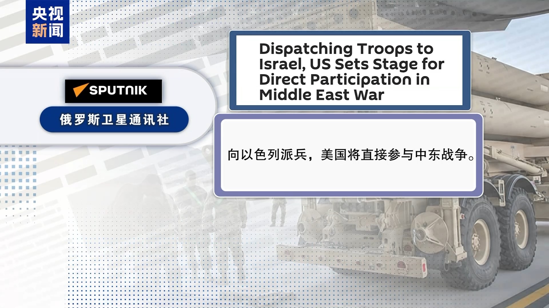 俄羅斯衛(wèi)星通訊社在另外一篇報道中提到,“向以色列派兵,美國將直接參與中東戰(zhàn)爭”。文章說,有觀察人士警告,美國現(xiàn)在公開向以色列派遣軍事人員,一旦有美國軍人受傷或死亡,美國就可能會直接出兵參戰(zhàn)。