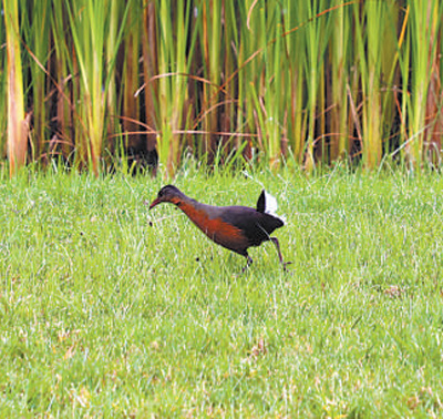一只正在友誼廣場(chǎng)覓食的魯氏秧雞。
