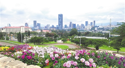 友誼廣場(chǎng)入口,外墻上四個(gè)遒勁有力的漢字“友誼廣場(chǎng)”躍入眼簾,紅底白字,分外醒目。走進(jìn)其中,目光所及皆是綠色,樹(shù)木蔥蘢、青草葳蕤,頓覺(jué)神清氣爽,仿佛踏入一個(gè)天然氧吧。廣場(chǎng)依山而建,高處連綿起伏的琴弦狀花帶,如同一條條彩帶在空中飛舞;半山腰空曠的廣場(chǎng)上,可遠(yuǎn)眺中央商務(wù)區(qū)的城市景觀;山腳的人工湖波光粼粼,倒映著藍(lán)天白云和綠樹(shù)紅花……
