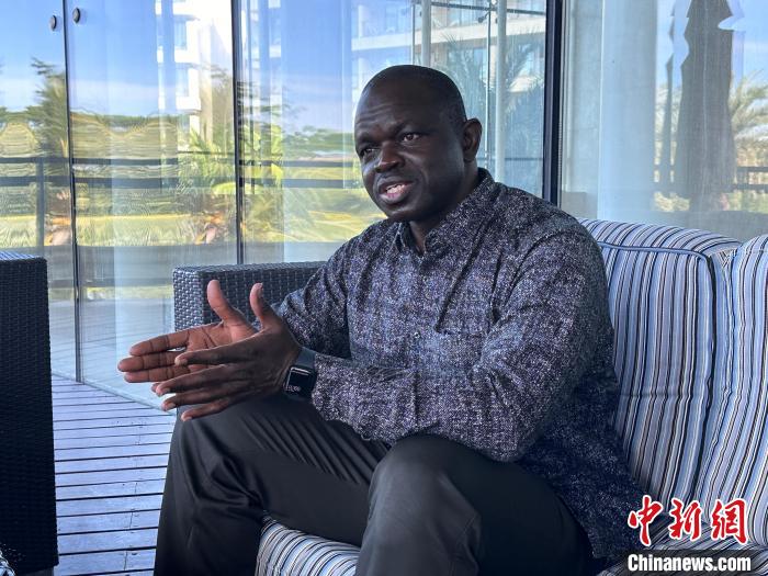 非洲水稻中心總干事巴布卡爾·曼內(nèi)(Baboucarr Manneh)日前在三亞接受記者采訪。中新社記者 薄雯雯 攝