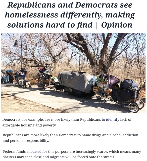 美國堪薩斯州《威奇托鷹報(bào)》評論稱,兩黨可能永遠(yuǎn)不會(huì)就無家可歸的原因達(dá)成一致,民主黨傾向于認(rèn)為是結(jié)構(gòu)性或系統(tǒng)性因素導(dǎo)致,而共和黨則更著重宣傳是個(gè)人因素導(dǎo)致。但無論是民主黨還是共和黨都無法解決無家可歸問題,他們相左的政策意見讓解決無家可歸者的問題更加艱難,流向需要援助的民眾的資金越來越少。