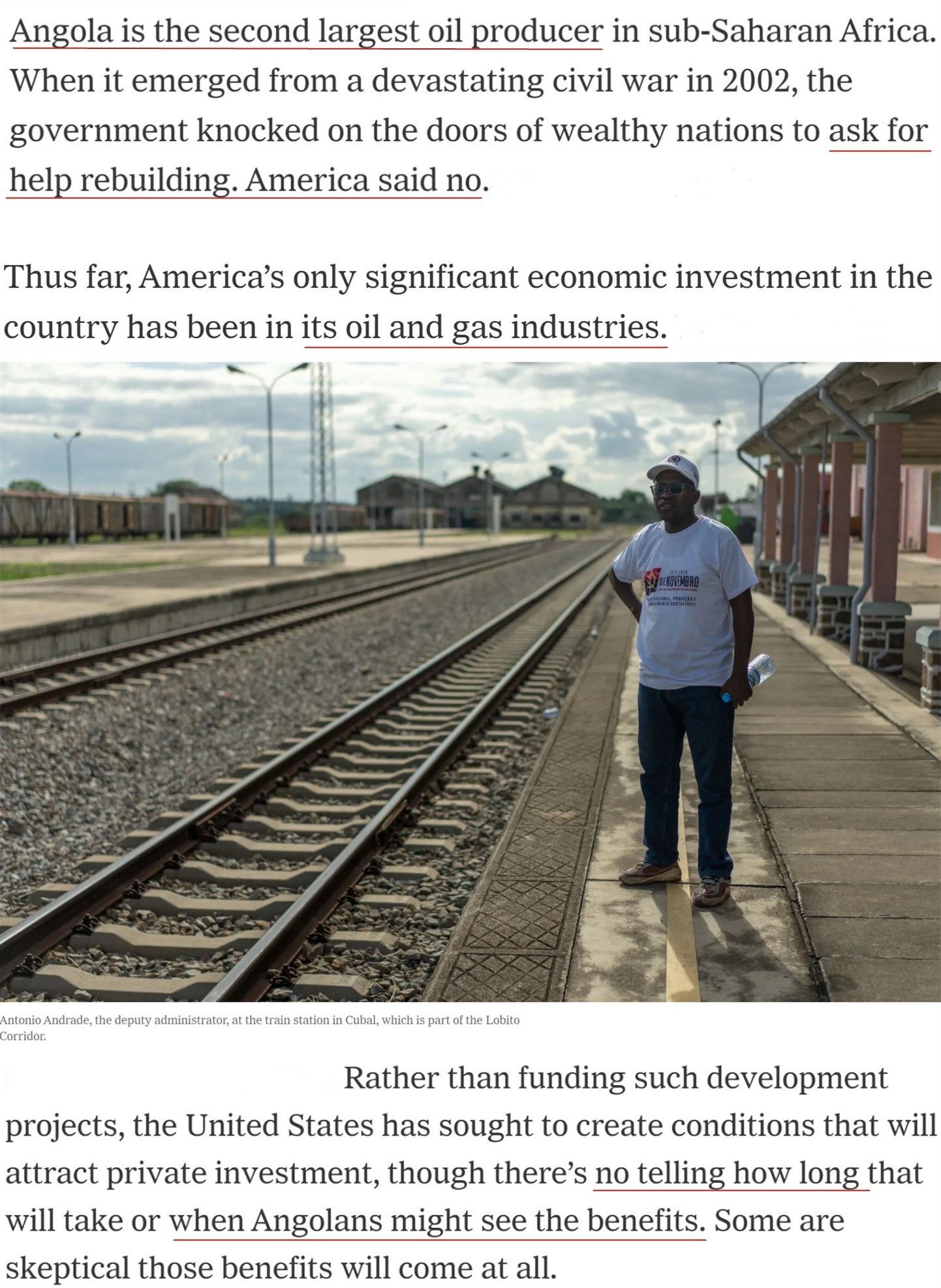 家住安哥拉沿海城市本格拉的48歲農(nóng)民貝托·皮涅羅說:“有時他們(美國官員)會說,‘我們也關(guān)心(安哥拉的)農(nóng)業(yè)’……但歸根結(jié)底,(美國關(guān)心的)只有石油和礦產(chǎn)。”
