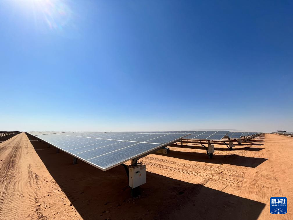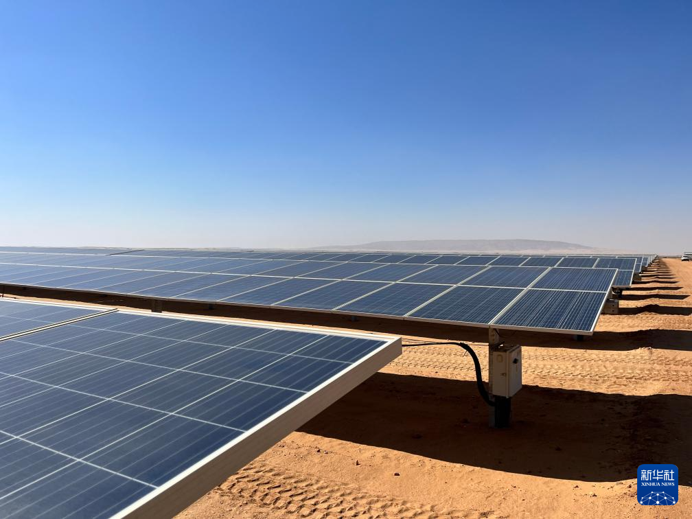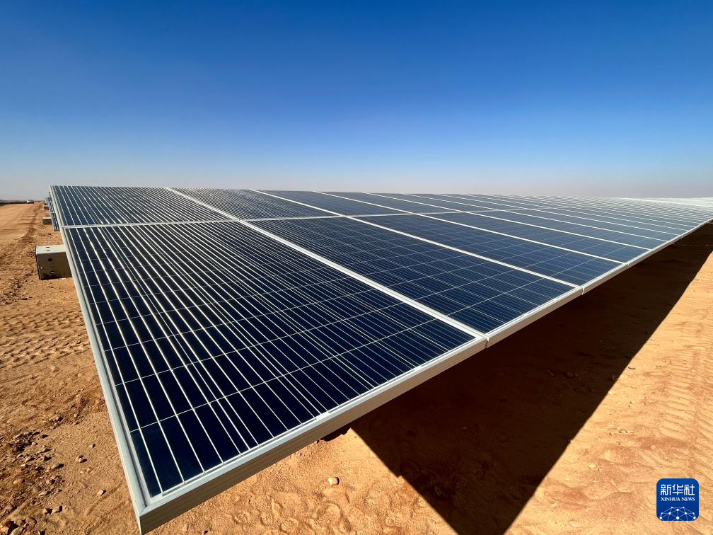 充沛的光照讓埃及具備得天獨厚的光伏發(fā)電條件。本班光伏產(chǎn)業(yè)園占地面積37平方公里,規(guī)劃建設40座太陽能發(fā)電廠,總裝機容量約2千兆瓦,目前已有32座發(fā)電廠建成并投入運營。廣袤的撒哈拉沙漠中,高高架起的光伏板像棋盤格一樣鋪展開,從高處俯瞰猶如藍色海洋。光伏板跟隨太陽的位置調(diào)整角度,炙熱的陽光被源源不斷轉化為電力能源。