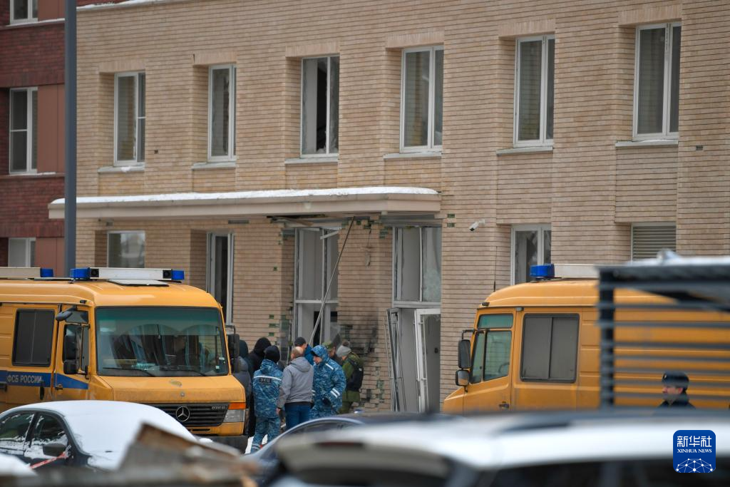 12月17日,在俄羅斯首都莫斯科,工作人員在居民樓爆炸現(xiàn)場調(diào)查。新華社發(fā)(亞歷山大攝)