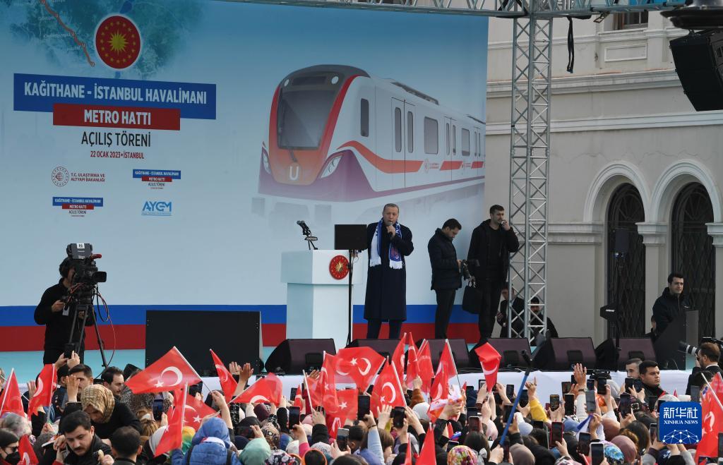 2023年1月22日,土耳其總統(tǒng)埃爾多安出席伊斯坦布爾新機(jī)場(chǎng)線開(kāi)通儀式。(圖源:新華社)