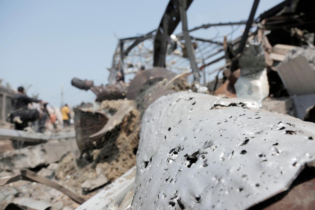 這是12月27日在也門薩那國際機場拍攝的地面上破碎的玻璃。新華社發(fā)(穆罕默德·穆罕默德攝)
