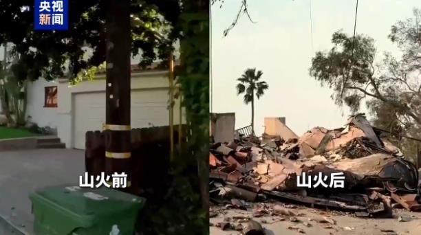 從對(duì)比畫(huà)面可以看出,到處都是殘?jiān)珨啾诤蜔龤У钠?,大量建筑外墻被燒黑,還有不少房屋被大火夷為平地。