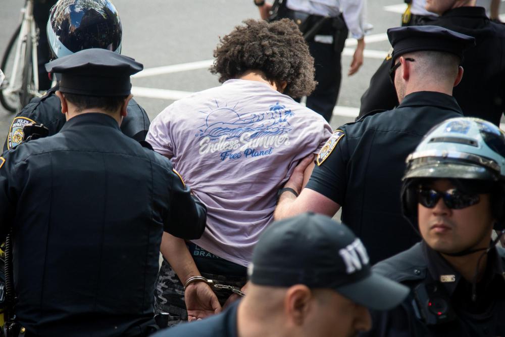 2023年5月6日,在美國紐約,警察帶走抗議者。新華社發(fā)(郭克攝)
