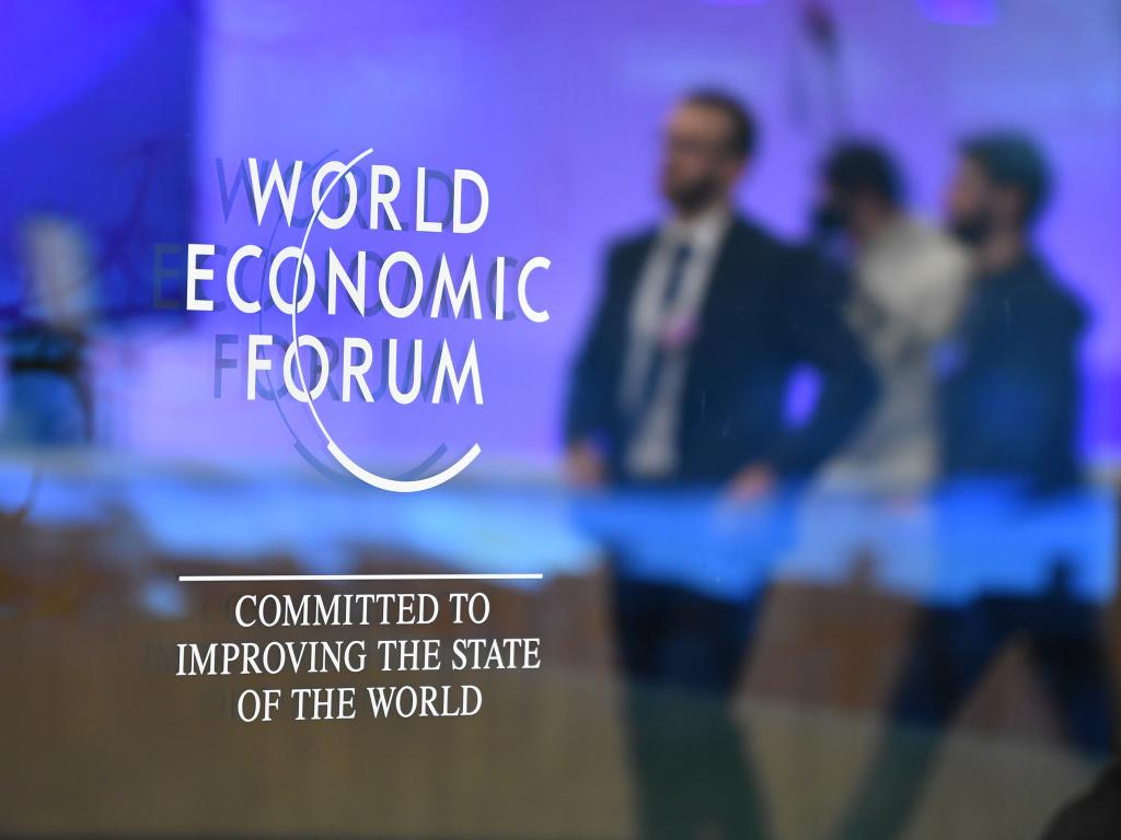 這是1月19日在瑞士達(dá)沃斯拍攝的世界經(jīng)濟(jì)論壇標(biāo)識(shí)。新華社記者連漪攝