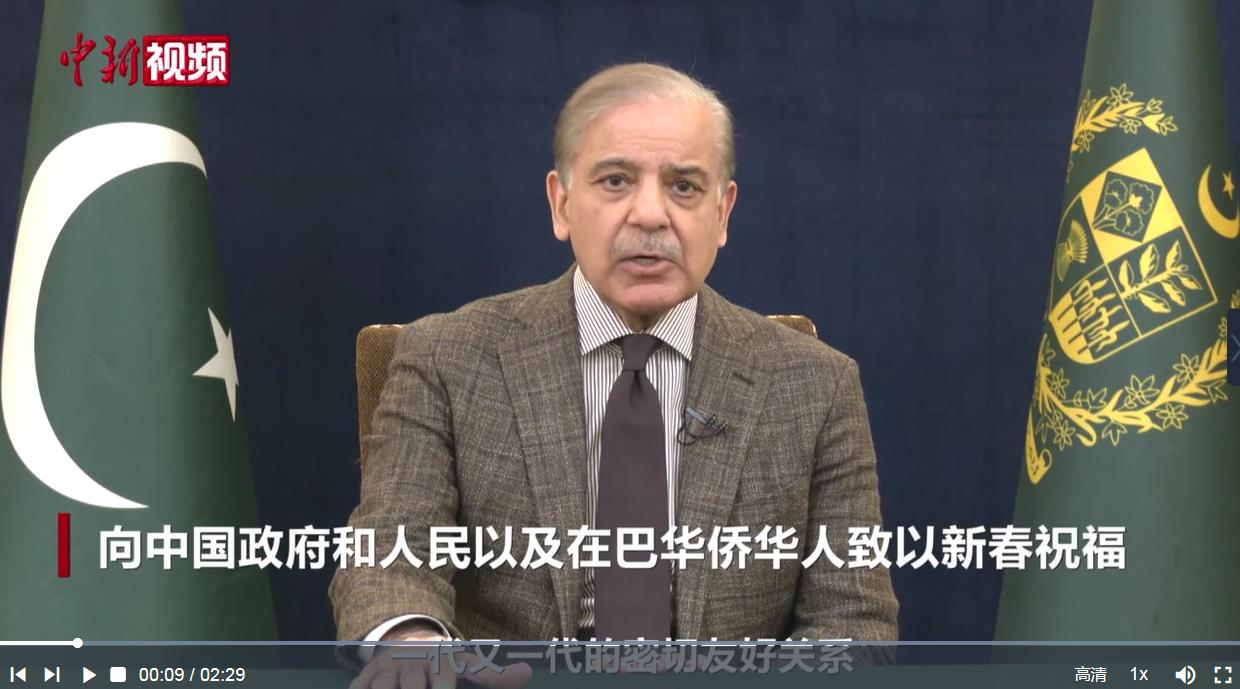 當?shù)貢r間1月28日,巴基斯坦總理夏巴茲發(fā)表視頻致辭,向中國政府和人民以及在巴華僑華人致以新春祝福,表示巴方將繼續(xù)與中方攜手為全球和平、繁榮與和諧作出貢獻。(記者 薄雯雯制作 徐妙巧 視頻來源 巴基斯坦駐華大使館)