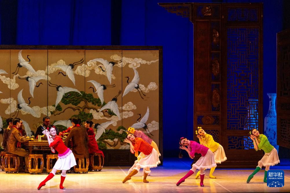 在美國(guó)首都華盛頓,中國(guó)中央芭蕾舞團(tuán)賀歲舞劇《過年》1月29日在肯尼迪表演藝術(shù)中心首演。這一舞劇改編自經(jīng)典芭蕾舞劇《胡桃夾子》,以柴可夫斯基的音樂為背景,賦予了西方家喻戶曉的“胡桃夾子”浪漫唯美的中國(guó)神韻,在芭蕾的舞臺(tái)上生動(dòng)展現(xiàn)出一幅豐富多彩的中國(guó)民俗風(fēng)情長(zhǎng)卷。當(dāng)“十二生肖舞”“春聯(lián)舞”“絲綢舞”“糖葫蘆舞”“瓷器舞”等輪番登場(chǎng)時(shí),現(xiàn)場(chǎng)2300余名觀眾爆發(fā)出一陣陣掌聲和歡呼聲,共同品味芭蕾里的中國(guó)年味兒。