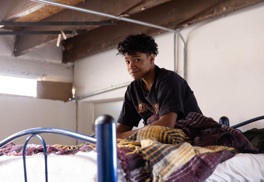 2025年2月2日,在墨西哥奇瓦瓦州華雷斯城的一處移民收容所,一名少年在休息。新華社記者 李夢馨 攝