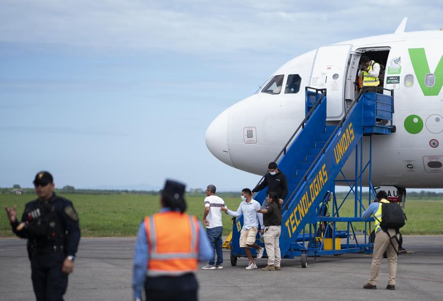 2025年2月13日,在洪都拉斯拉利馬市,被遣返移民抵達(dá)機(jī)場。新華社發(fā) 戴維 攝