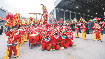 2月12日,在位于浙江杭州建德市更樓街道的建德新農(nóng)都農(nóng)產(chǎn)品批發(fā)市場內(nèi),一場特色元宵市集主題活動助力消費(fèi)市場升溫。2025年1月正式投入使用的建德新農(nóng)都農(nóng)產(chǎn)品批發(fā)市場建筑面積8.29萬平方米,集蔬菜、水果、肉類、水產(chǎn)品等批發(fā)零售于一體,發(fā)揮保障商品供應(yīng)和穩(wěn)定區(qū)域物價作用。圖為元宵市集上,小朋友表演“萌娃舞龍”。