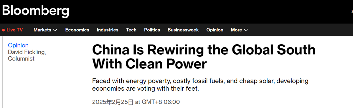 對(duì)于資金匱乏的“全球南方”國(guó)家而言,這種價(jià)格優(yōu)勢(shì)改變了游戲規(guī)則。美國(guó)彭博社報(bào)道指出,能源就是命運(yùn)。中國(guó)太陽(yáng)能和風(fēng)能設(shè)備方面的大量產(chǎn)能正在“用清潔能源重新連接全球南方”,使孟加拉國(guó)和肯尼亞等發(fā)展中國(guó)家也能夠用上可再生能源。