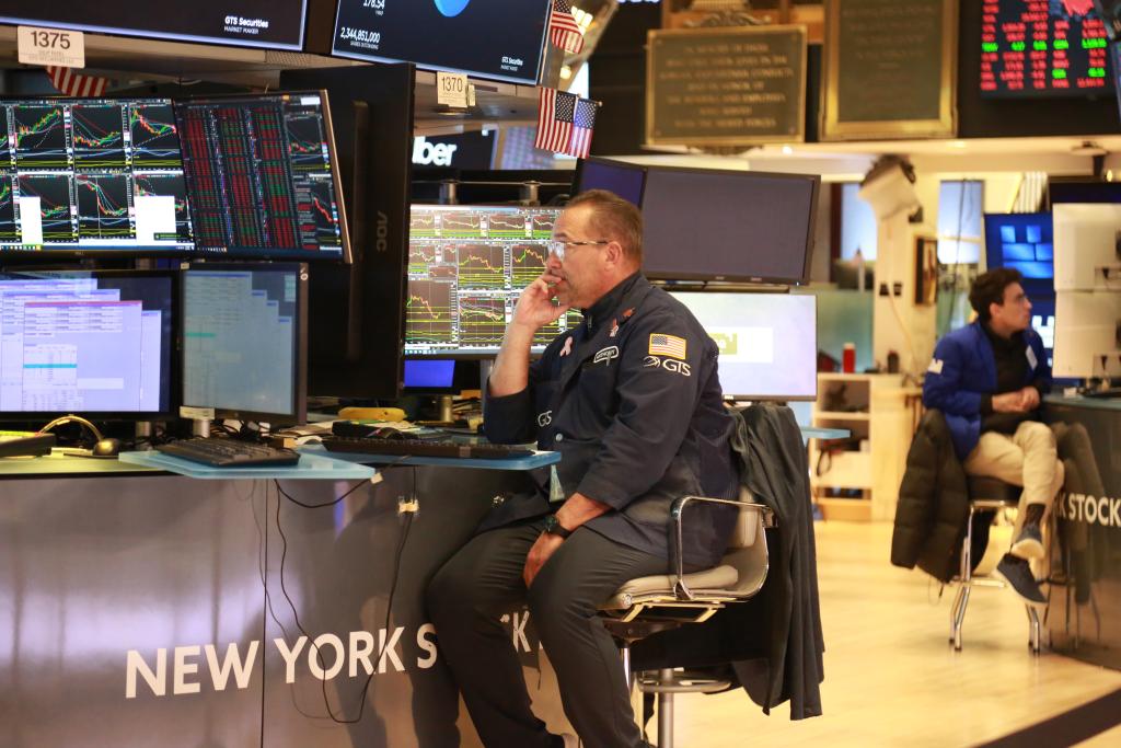 3月4日,交易員在美國(guó)紐約證券交易所交易大廳工作。新華社記者劉亞南攝