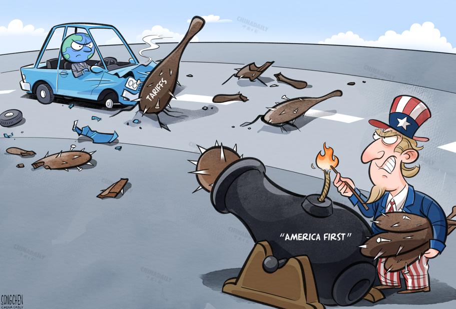 貿(mào)易保護(hù)砸自己的腳。(作者:中國日?qǐng)?bào) 羅杰)