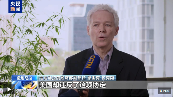 危地馬拉前經(jīng)濟(jì)部副部長(zhǎng) 恩里克·拉克斯:美國(guó)的關(guān)稅政策背離所有基于規(guī)則的國(guó)際貿(mào)易準(zhǔn)則,我們中美洲國(guó)家與美國(guó)簽署了自由貿(mào)易協(xié)定,美國(guó)卻違反了這項(xiàng)協(xié)定。