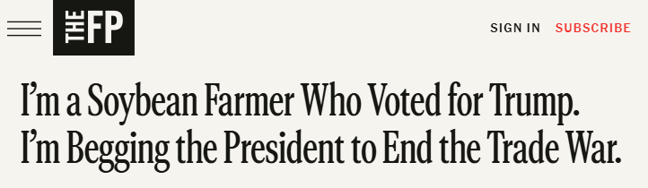 近日,拉格蘭德在The Free Press刊文表示,這場不斷升級的貿(mào)易戰(zhàn)對美國豆農(nóng)來說是個沉重打擊,因?yàn)橹袊瞧渥畲蟮暮M馐袌?。對于許多美國大豆種植戶來說,這仿佛是2018年噩夢般場景的重現(xiàn)。那是特朗普總統(tǒng)的第一個任期,其采取的關(guān)稅措施使美國農(nóng)業(yè)損失了260億美元,僅大豆產(chǎn)業(yè)就損失了近200億美元。