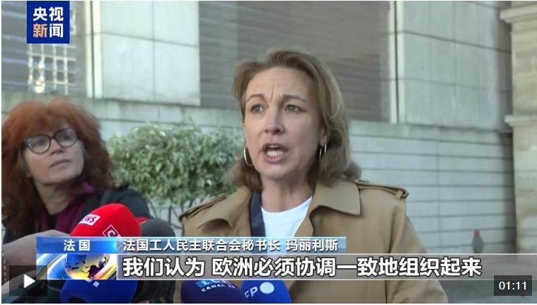 法國(guó)工人民主聯(lián)合會(huì)秘書(shū)長(zhǎng) 瑪麗利斯:我們認(rèn)為,歐洲必須協(xié)調(diào)一致地組織起來(lái),積極應(yīng)對(duì)美方關(guān)稅政策,應(yīng)該實(shí)施針對(duì)美方的關(guān)稅政策,研究美國(guó)公司進(jìn)入歐洲市場(chǎng)的準(zhǔn)入規(guī)則,并密切監(jiān)測(cè)關(guān)稅對(duì)歐洲企業(yè)的潛在影響。