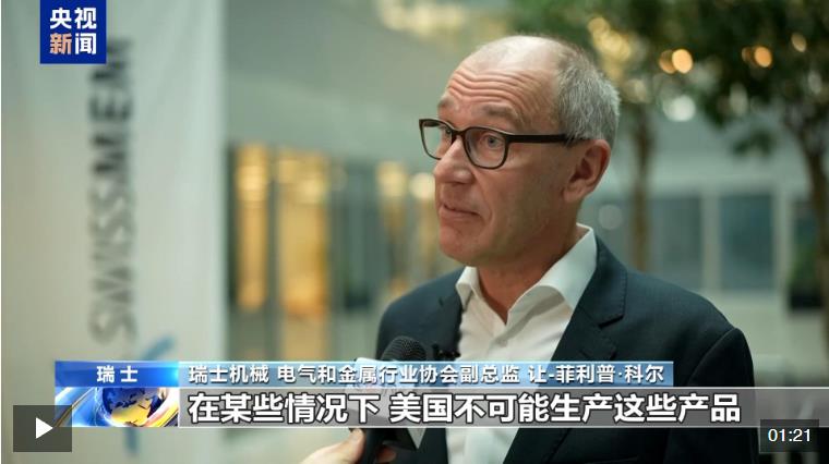 瑞士最大的工業(yè)協(xié)會——瑞士機械、電氣和金屬行業(yè)協(xié)會副總監(jiān)日前向總臺記者表示,美國加征關(guān)稅最大的受害者正是美國自己,瑞士希望加強與包括中國在內(nèi)的全球其他主要市場的聯(lián)系。