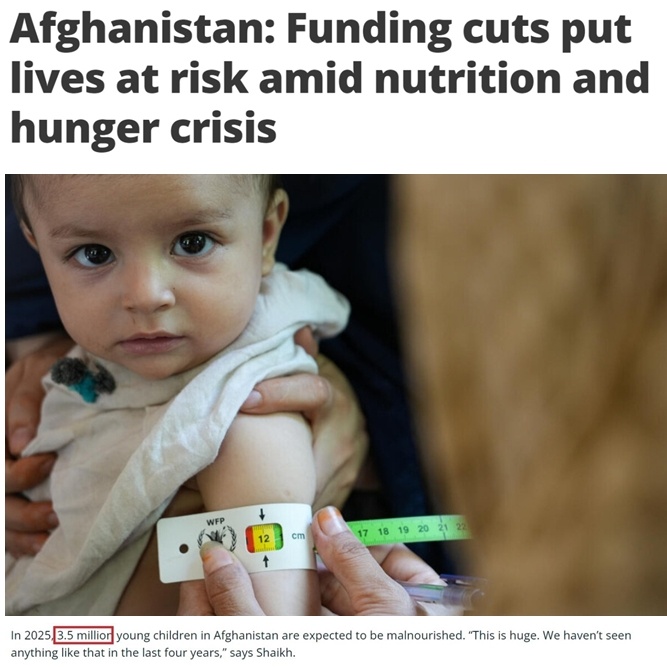 美國此前承擔了阿富汗國際人道援助資金的43%。然而,其資金鏈的突然斷裂導致當?shù)仃P(guān)鍵人道主義項目被迫停擺,食品供應(yīng)銳減。