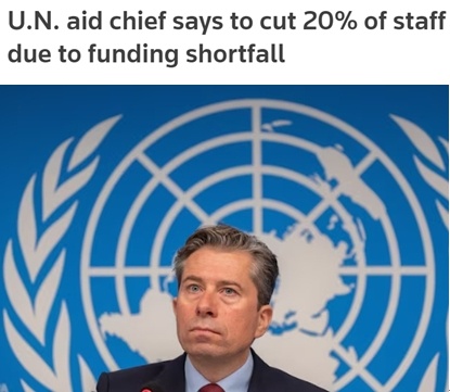 聯(lián)合國人道主義事務(wù)協(xié)調(diào)廳近日發(fā)表公開信說,由于資金遭遇“殘酷削減”,尤其是美國政府大幅叫停對外援助,該機構(gòu)將不得不裁撤20%、即500多名工作人員。
