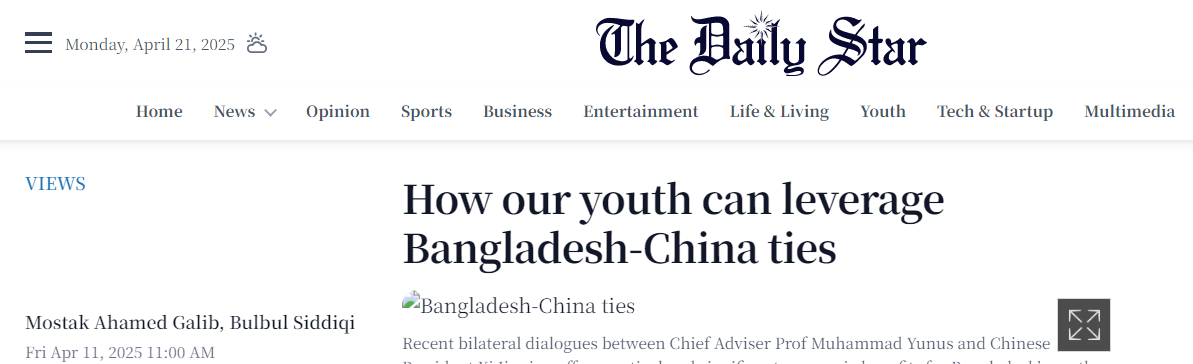 另?yè)?jù)孟加拉國(guó)《每日星報(bào)》報(bào)道,2025年適逢中孟建交50周年和“中孟人文交流年”,這不僅是里程碑,更象征無(wú)限希望。